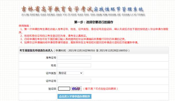 进入“吉林省高等教育自学考试实践性环节管理系统”界面,逐项填报