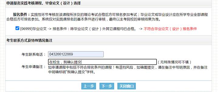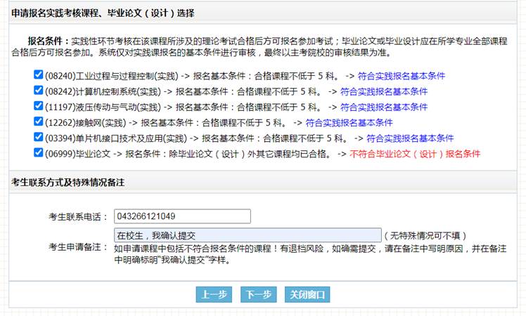第三项是“申请报名实践考核课程、毕业论文(设计)选择;按照黄色标注的自考报名专业方向进行选择: