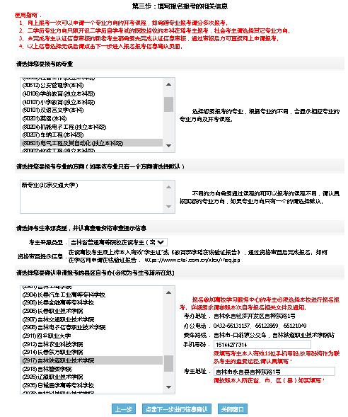 第二项是“请选择您要报考专业的方向”,方向默认为新专业北京交通大学;