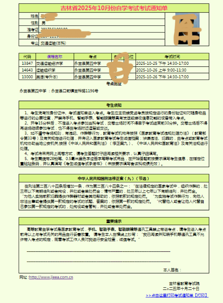 3.打印网址:吉林省教育考试院官网:https://www.jleea.com.cn/。