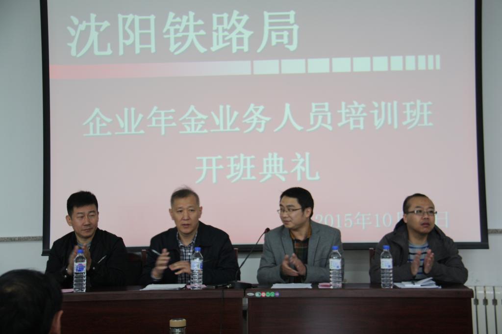 2015年10月27日,“沈局企业年金业务培训班”开班典礼在培训中心305教室举行,沈阳铁路局社保处林崴副处长出席了典礼仪式。仪式上,路局领导强调了举办本次培训班的重要性,要求学员们通过培训进一步了解、掌握企业年金的基础知识、并了解我局企业年金基金的投资管理、能够熟练操作《沈阳铁路局企业年金管理信息平台》。培训中心班主任代表学院及培训中心对本次培训进行了说明与要求,希望学员们珍惜学习机会、遵守沈阳局培训的相关规定和纪律要求,确保人身、财产和交通安全,圆满完成培训任务。