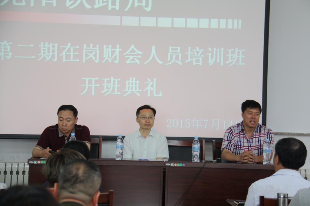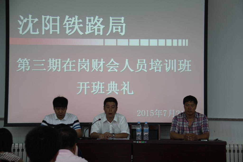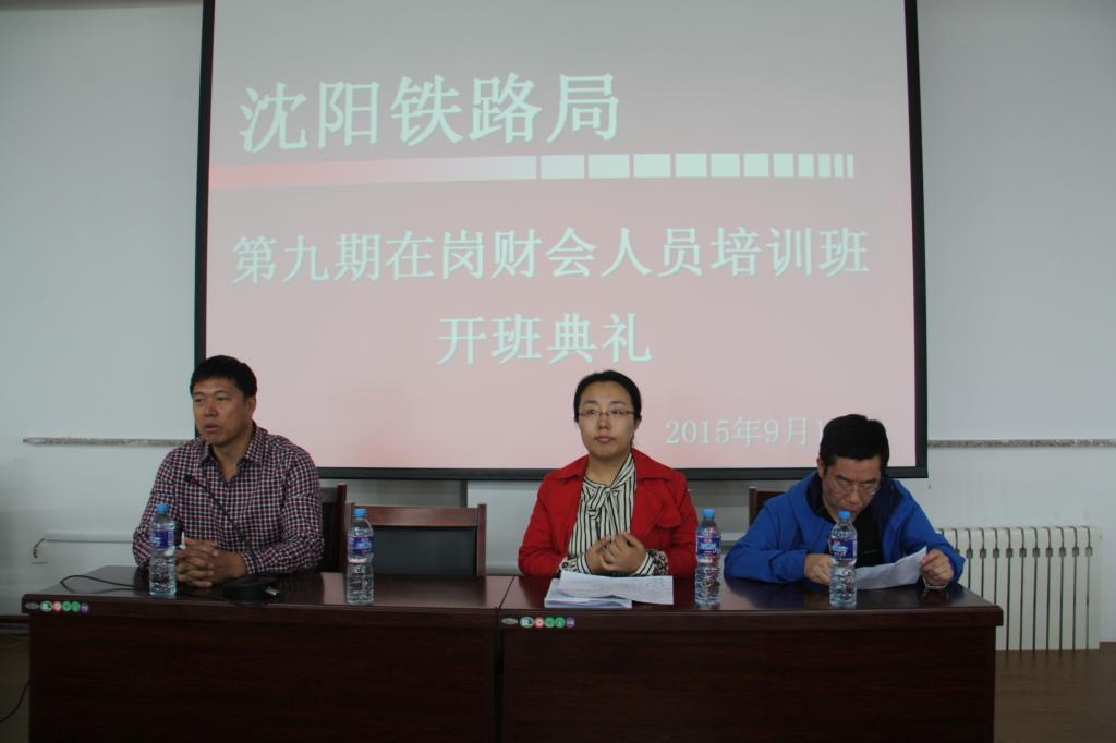 2015年7月13日至9月15日,“沈局在岗会计人员第二至九期培训班”开班典礼在培训中心305教室举行,沈阳铁路局财务处领导出席了典礼仪式。仪式上,路局领导强调了举办本次培训班的重要性,要求学员们通过培训进一步了解、掌握会计知识。培训中心班主任对学院及培训中心的有关规定作了说明与要求,希望学员们加强组织纪律性,确保人身、财产和交通安全,并选出班委会成员为大家日常学习服务。